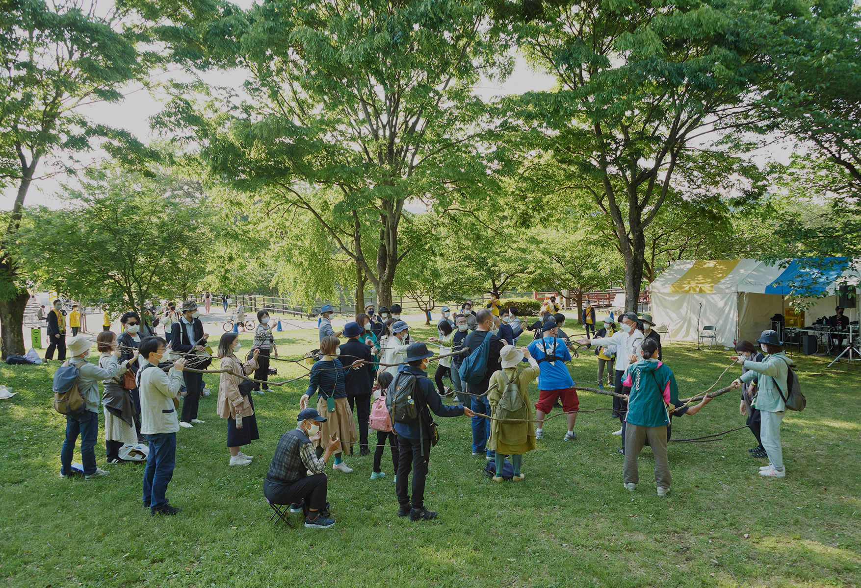 With the backdrop of vivid, fresh green leaves and stone walls, everyone can watch performances and relax like going on a picnic.